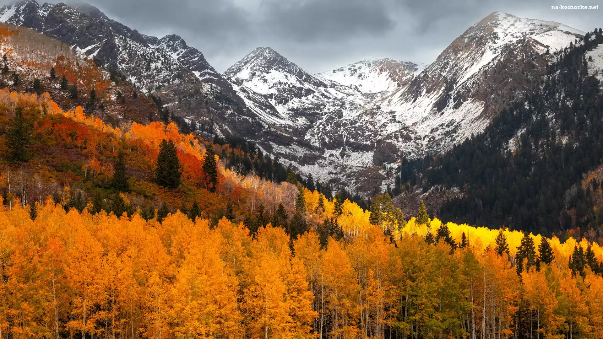 Drzewa, Jesień, Pożółkłe, Chmury, Las, Góry na Komórkę