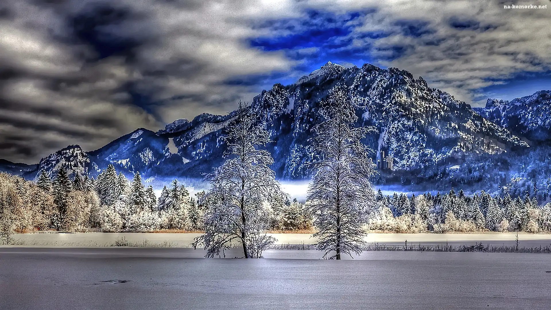 Młyn, Zima, Śnieg Europa, Góry, Chatka Białe, Drzewa, Szron Góra, Skały Góry Chmury, Góry, Śnieg Niebo, Chmury, Światło Ośnieżone, Drzewa, Rzeka Chmury Kręta, Skały, Górska, Droga Kolorowe, Tęcze, Chmurki Grafika 2D Płatki, Śniegu Chmury Góry, Dwa, Kufle, Calsberg, Chata