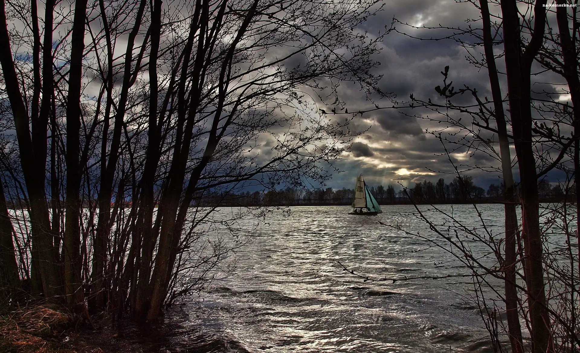 Chmury, Żaglówka, Jezioro, Drzewa na Komórkę
