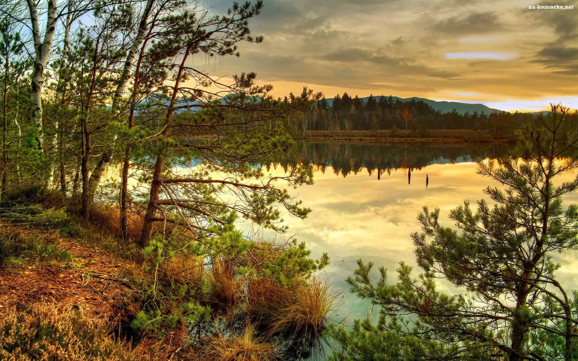 Jezioro, Chmury, Drzewa na Komórkę