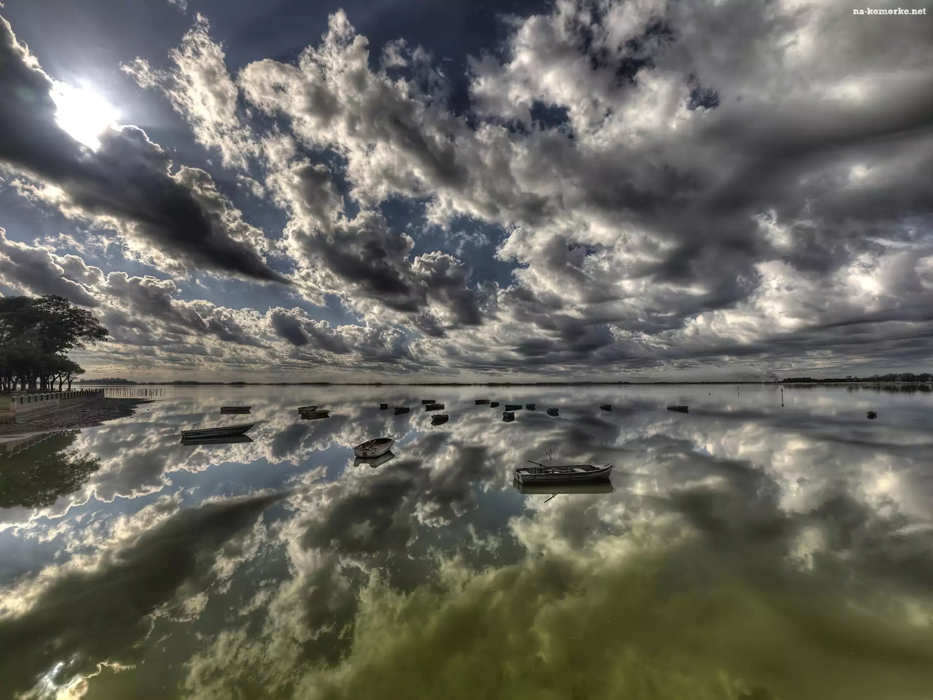 Jezioro, Chmury, Odbicie na Komórkę