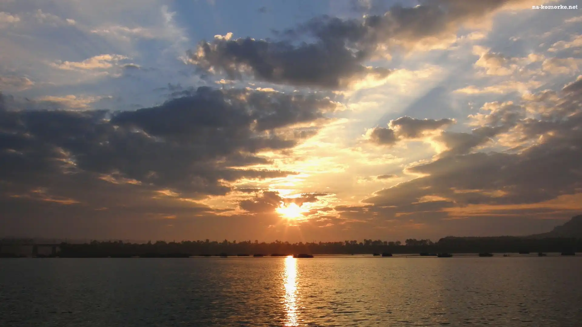 Chmury, Zachód, Słońca, Jezioro, Ciemne na Komórkę
