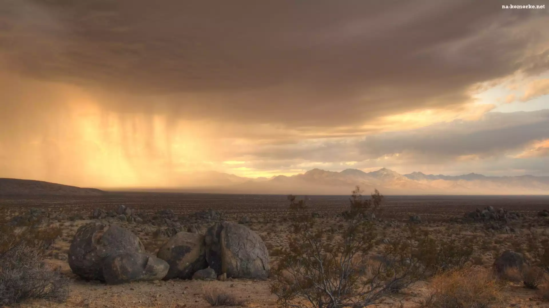 Chmury, Pustynia, Piasek, Kamienie, Krzewy na Komórkę