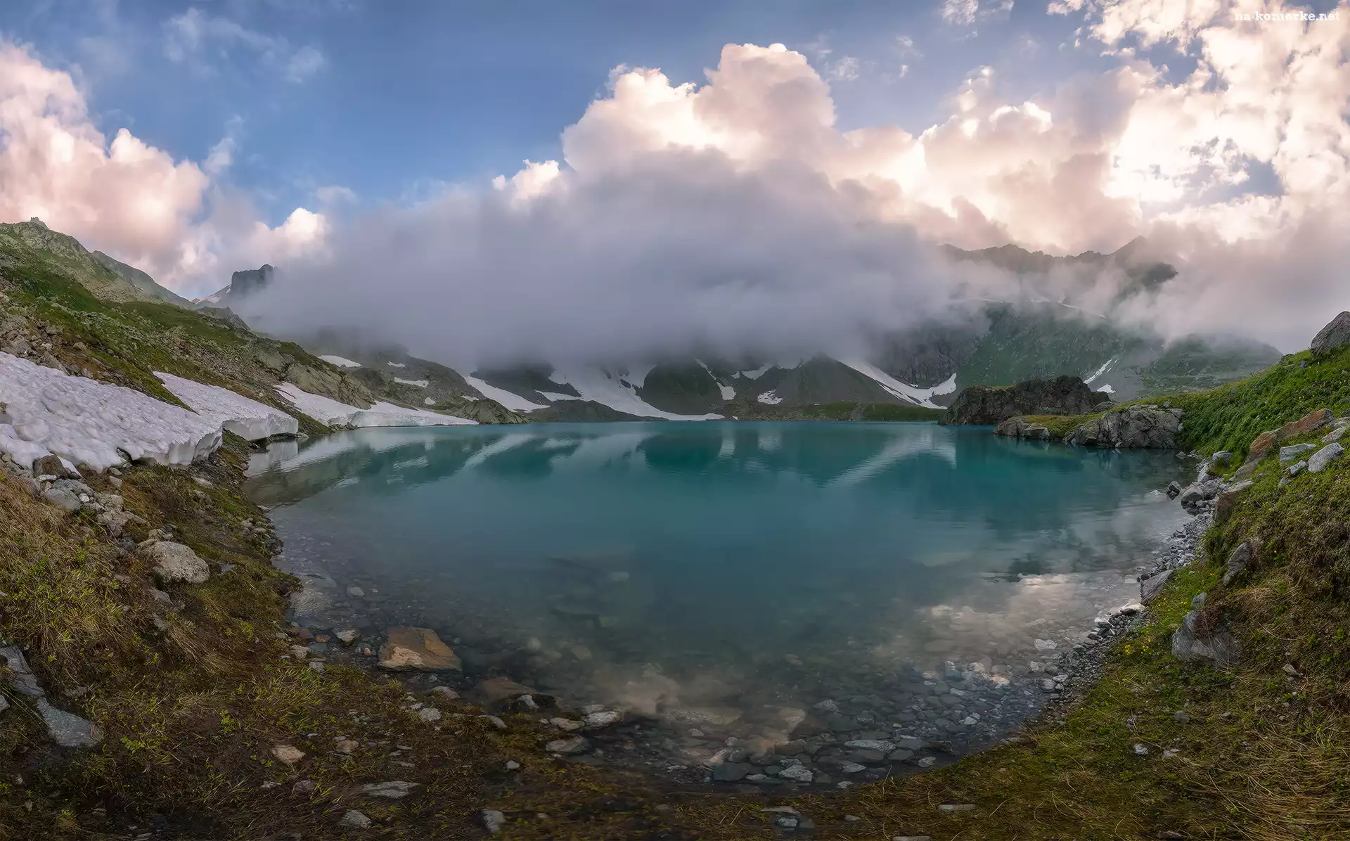 Chmury, Góry, Jezioro, Gruzja, Kaukaz, Imeretia na Komórkę