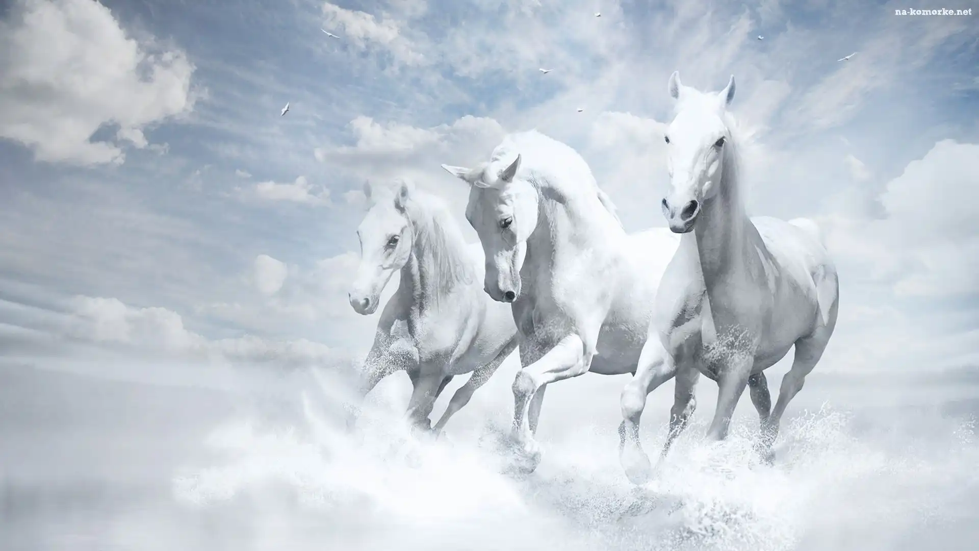 Konie, Chmury, Woda na Komórkę