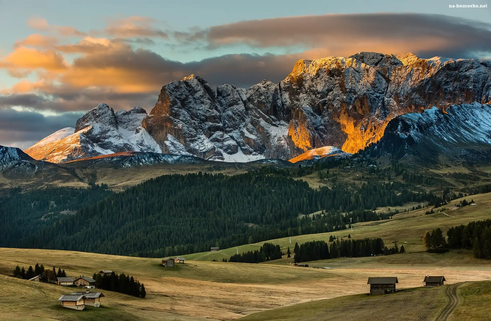 Chmury, Góry, Alpy, Lasy, Domy na Komórkę