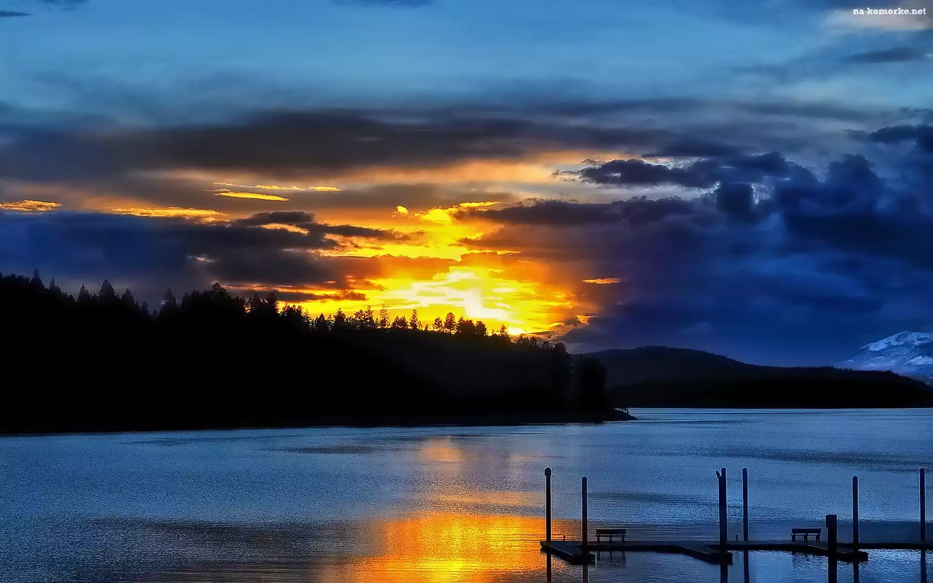 Chmury, Góry, Jezioro, Słońca, Lasy, Zachód na Komórkę
