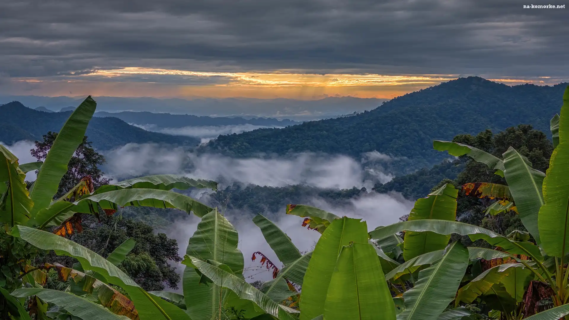 Chmury, Porośnięte, Góry, Mgła, Listki na Komórkę
