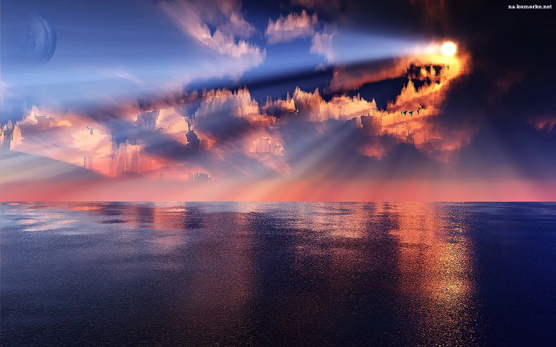 Chmury, Słońca, Morze, Promienie na Komórkę