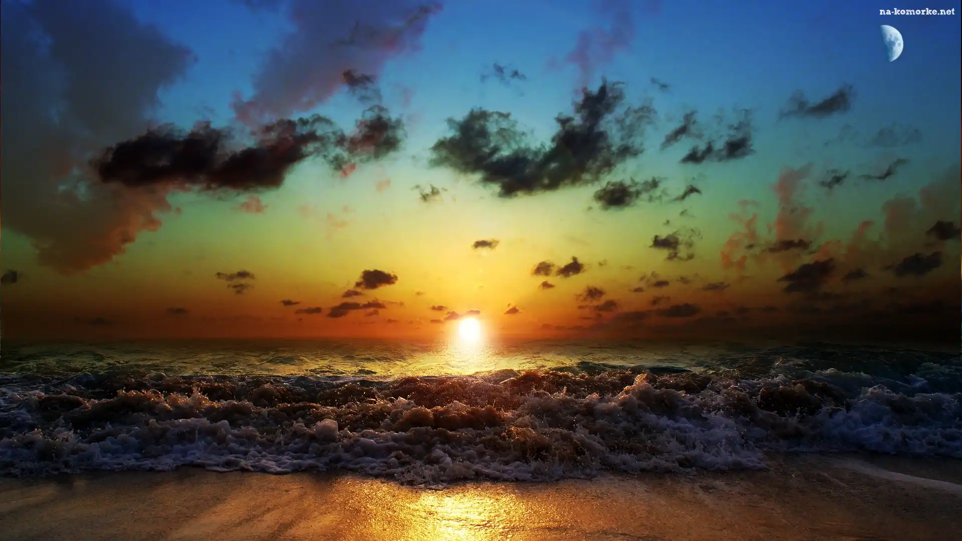 Chmury, Wschód, Słońca, Morze, Fale na Komórkę