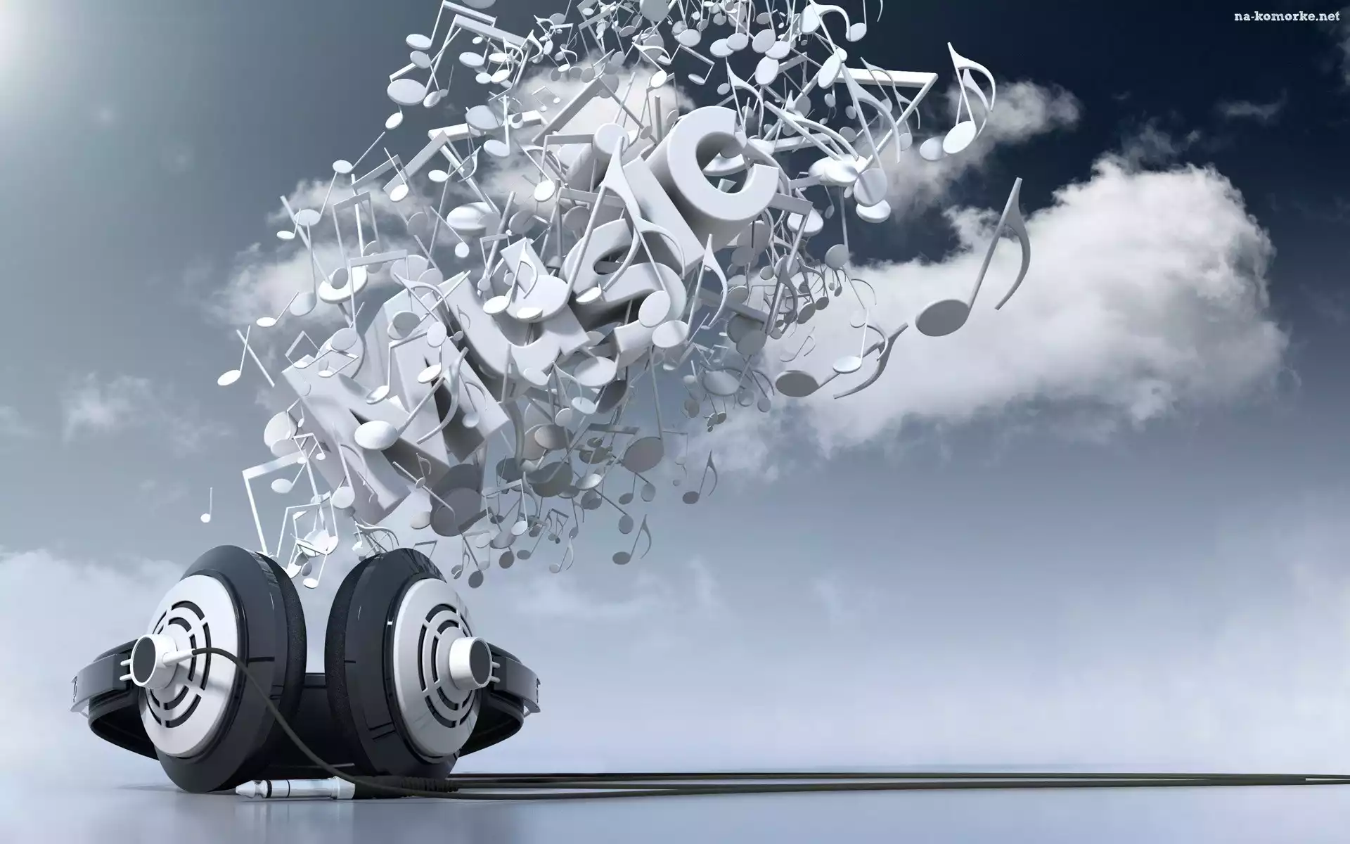 Chmury, Muzyka, Słuchawki, Napis, Nutki na Komórkę
