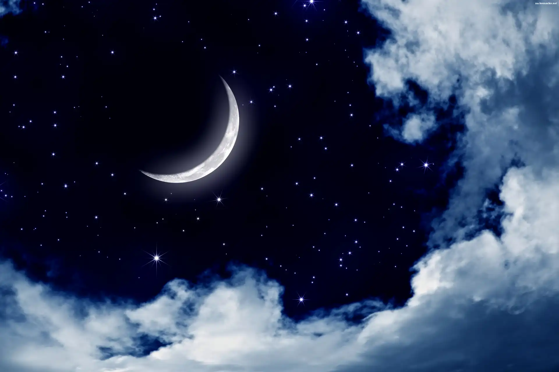 Chmury, Księżyc, Niebo, Noc na Komórkę