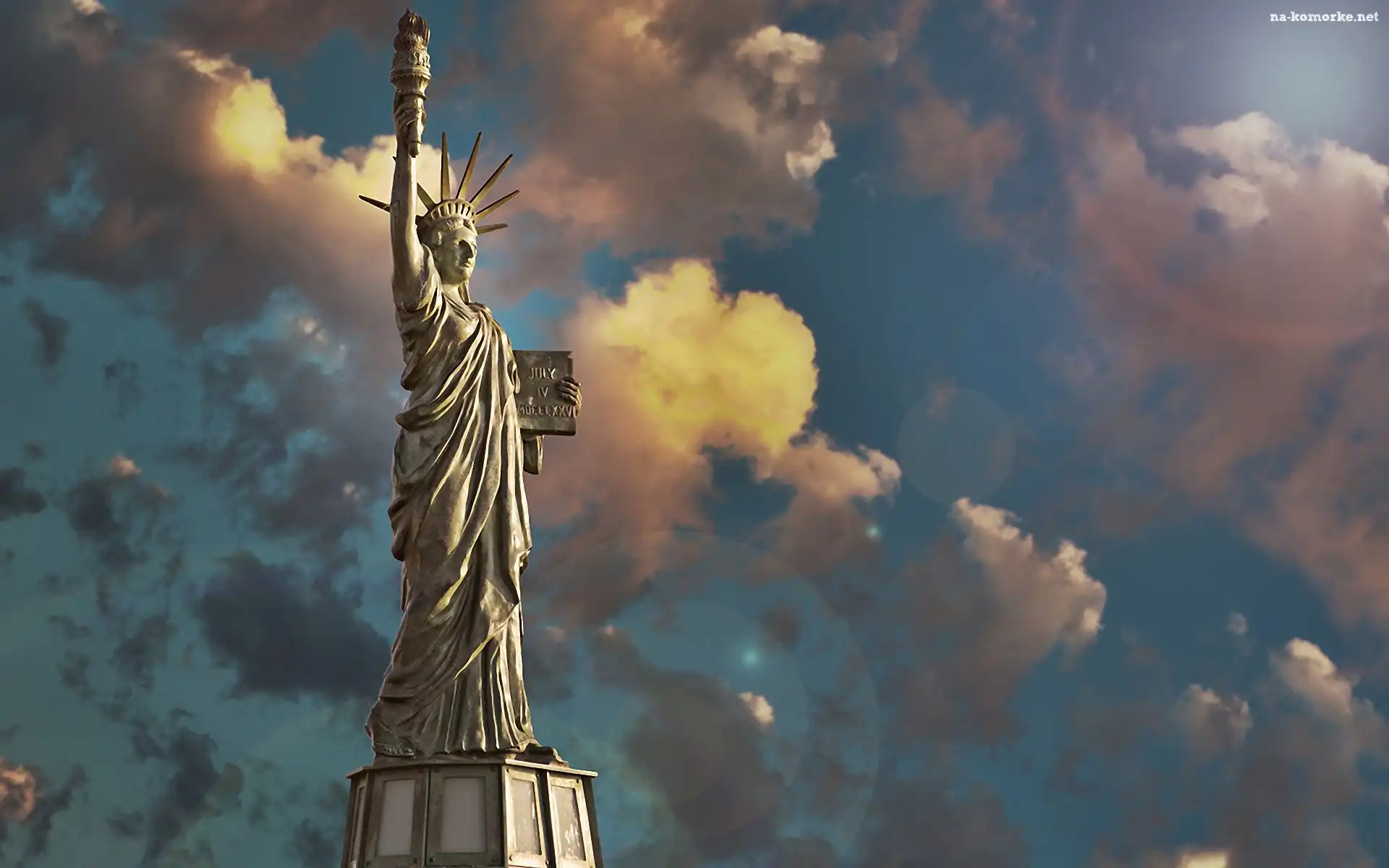 Chmury, Statua, Wolności, Nowy, Jork na Komórkę