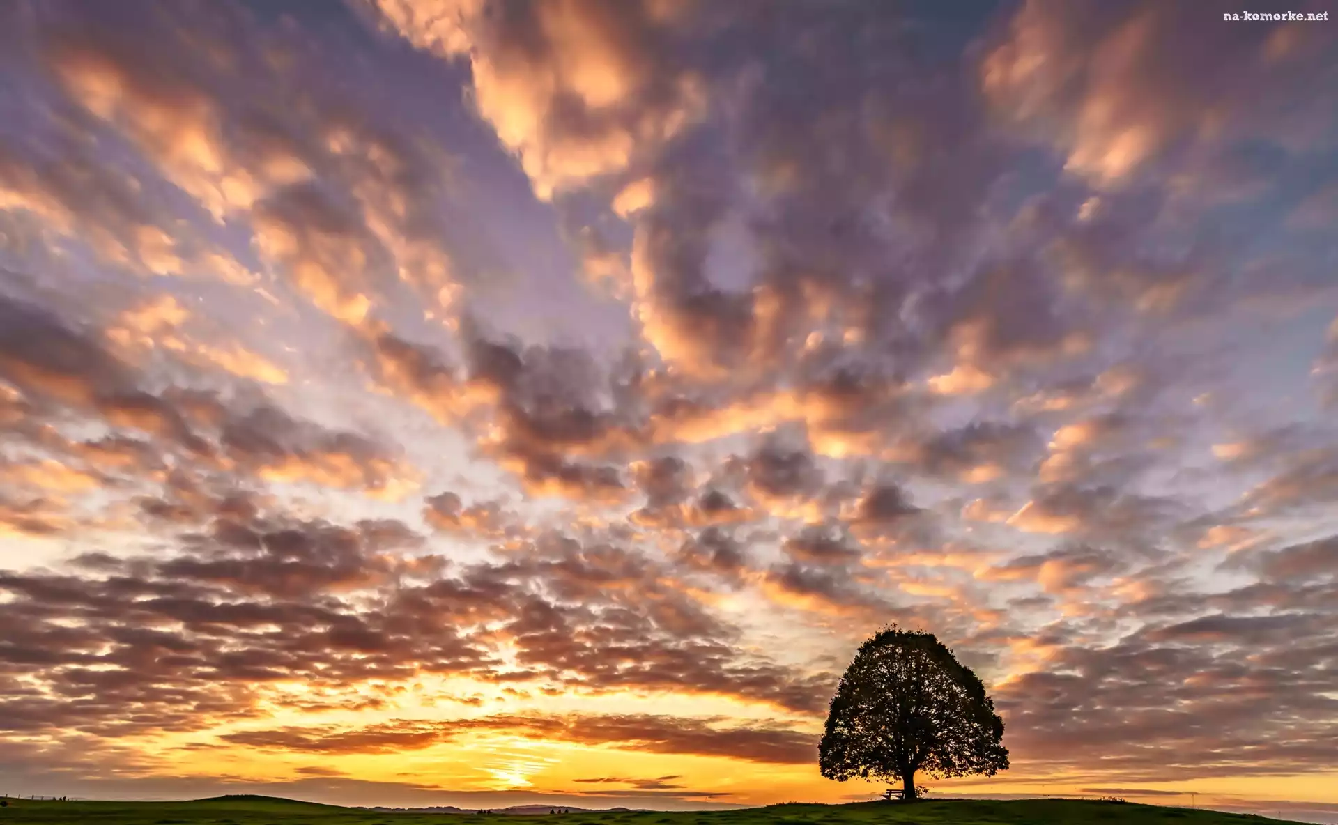 Chmury, Niebo, Wschód Slońca, Obłoki, Drzewo na Komórkę