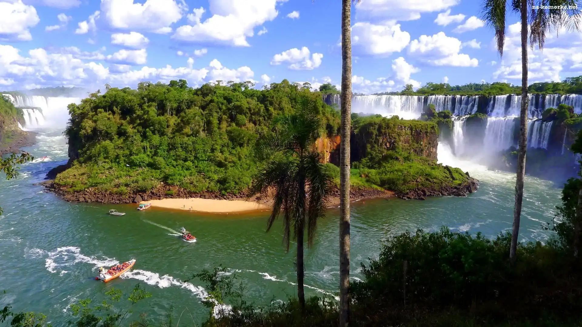 Chmury, Wodospady, Iguazu, Łódki, Drzewa na Komórkę