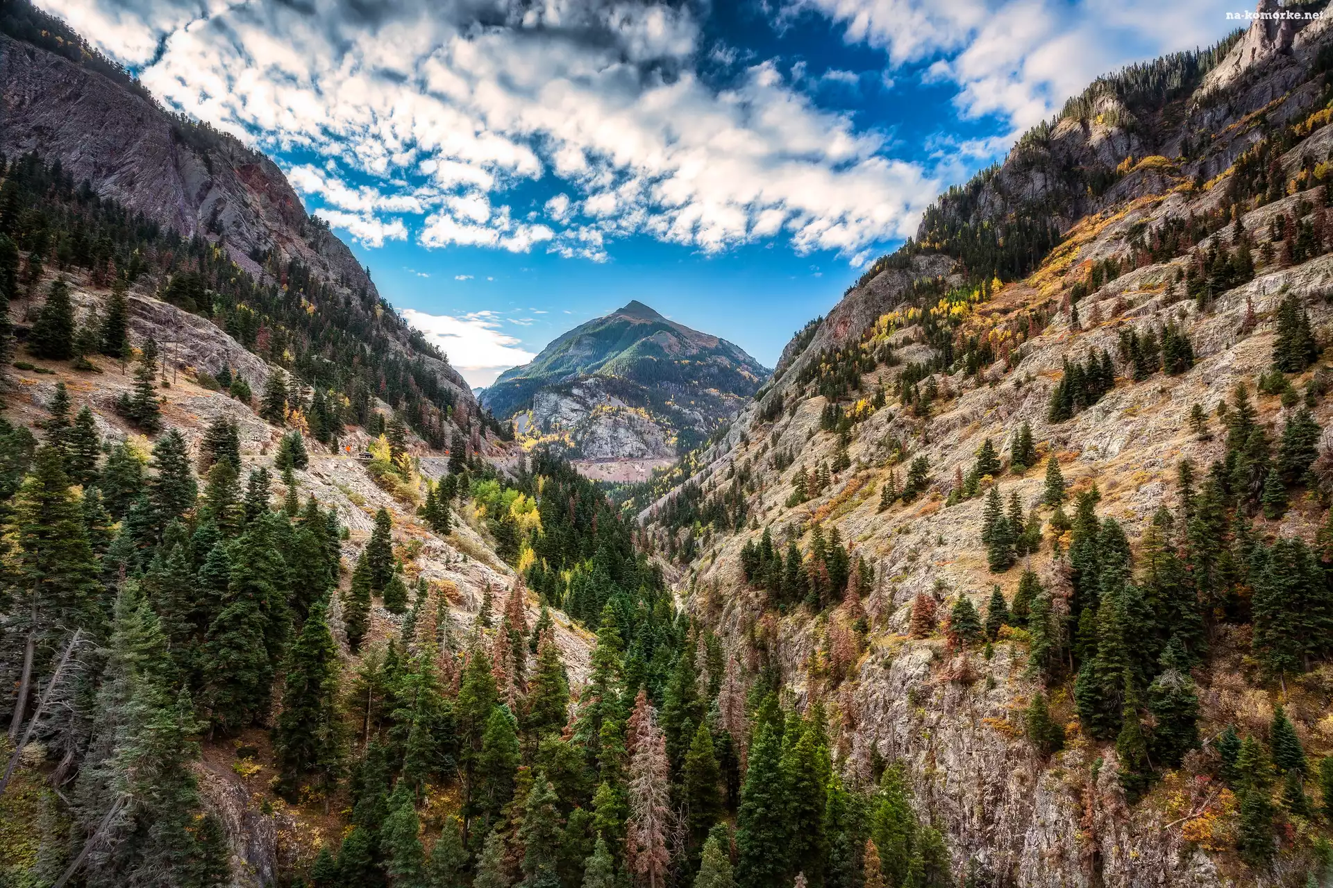 Chmury, Szczyt Uncompahgre Peak, Góry San Juan Mountains, Stany Zjednoczone, Drzewa, Stan Kolorado na Komórkę |