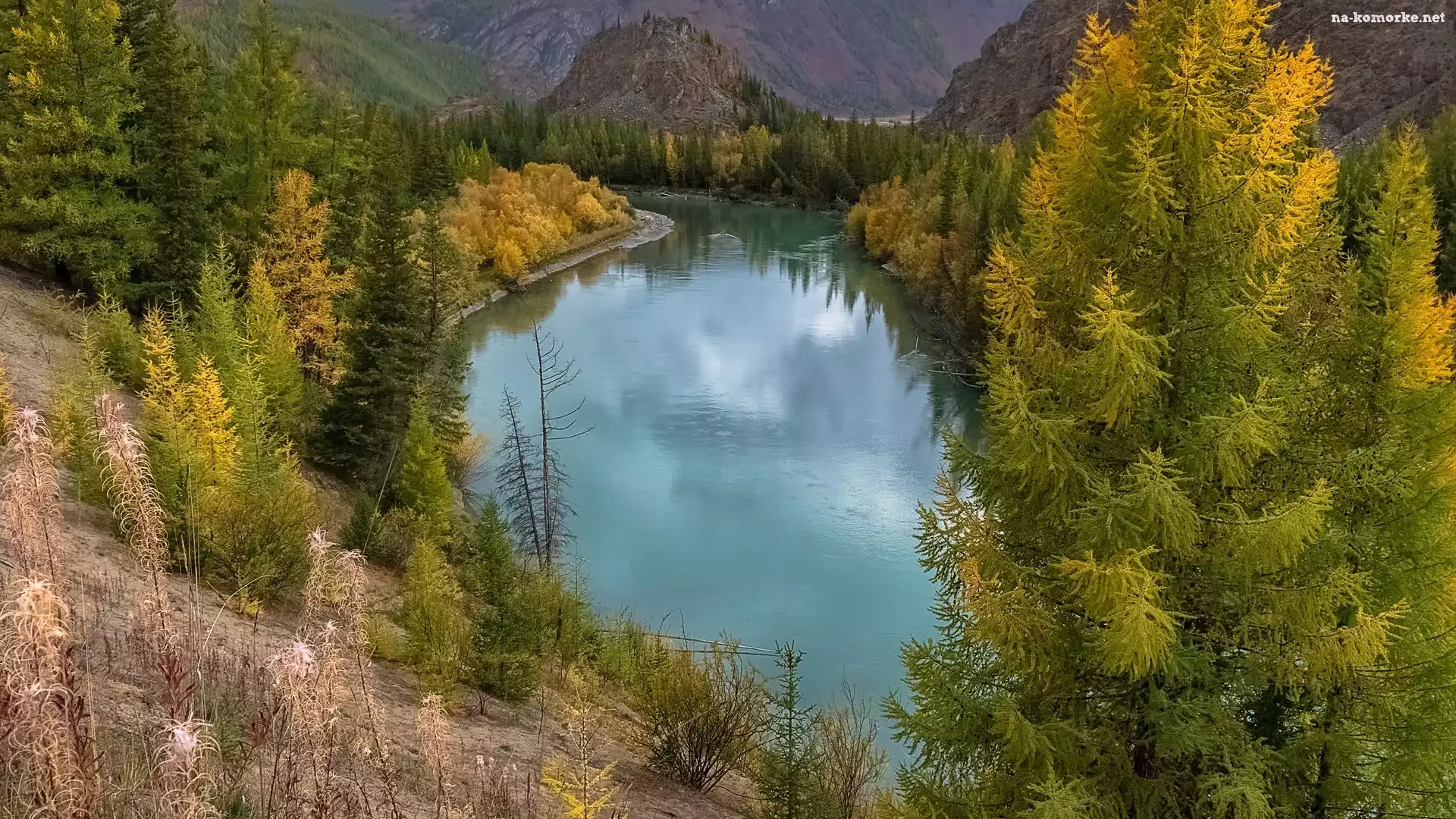 Chmury, Drzewa, Rosja, Czuja, Rzeka, Ałtaj, Góry, Jesień, Republika Ałtaju na Komórkę