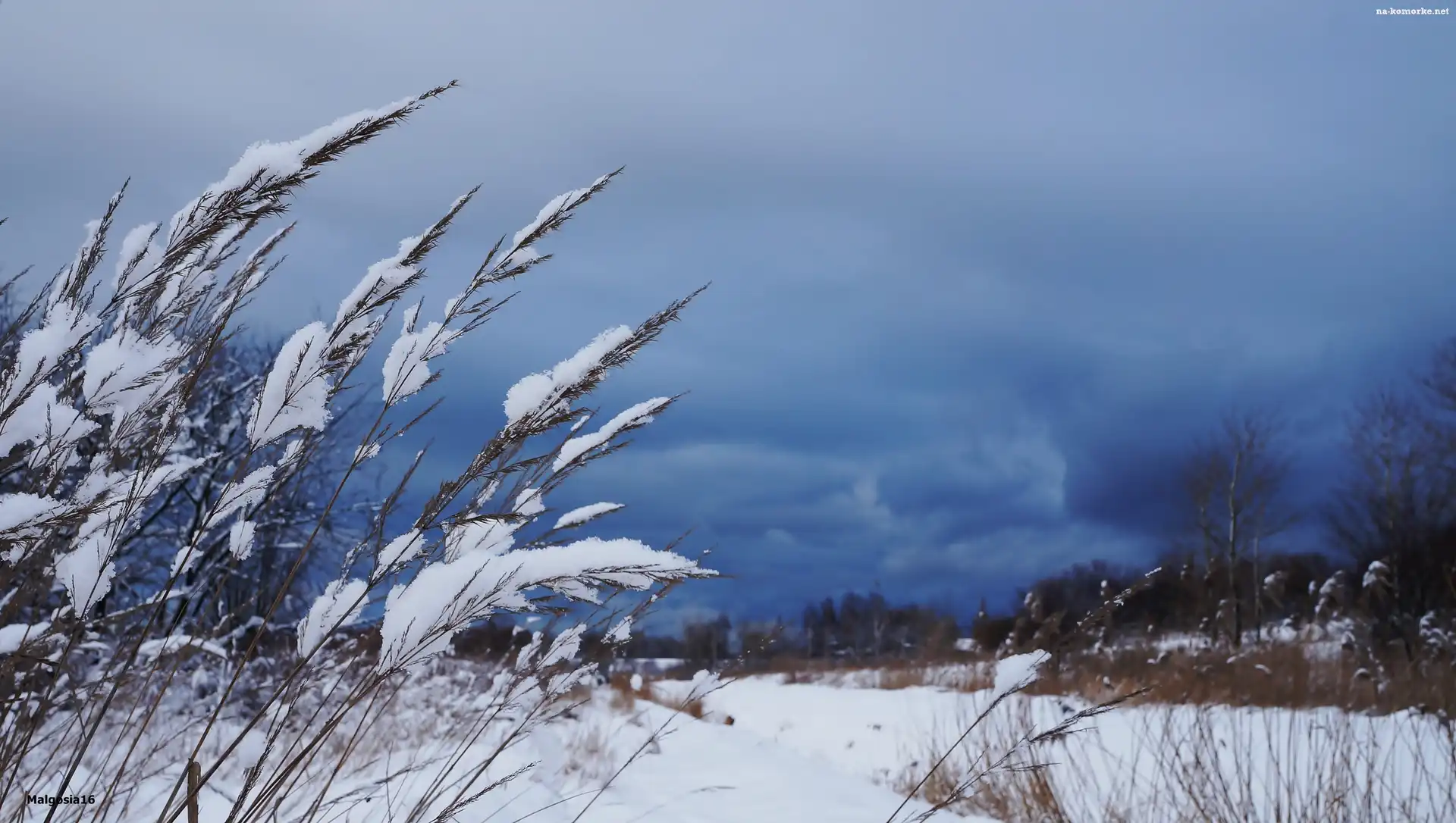 Chmury, Zima, Śnieg, Rośliny, Niebo na Komórkę