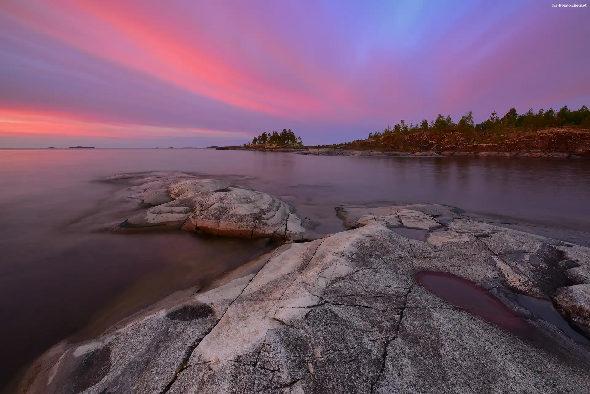 Chmury, Ładoga, Jezioro, Rosja, Skały, Karelia na Komórkę