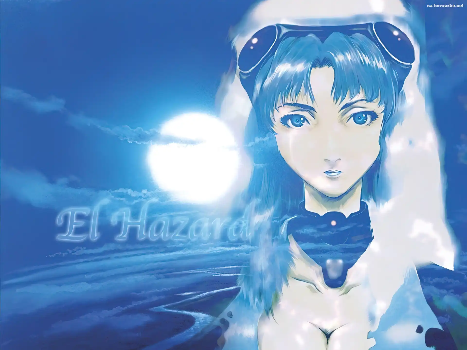 El Hazard, kobiety, profil, napis kot, garnitur, El Hazard, postacie El Hazard, uśmiech, galaktyka, dziewczyny chmury, El Hazard, rzeka, słońce, kobieta