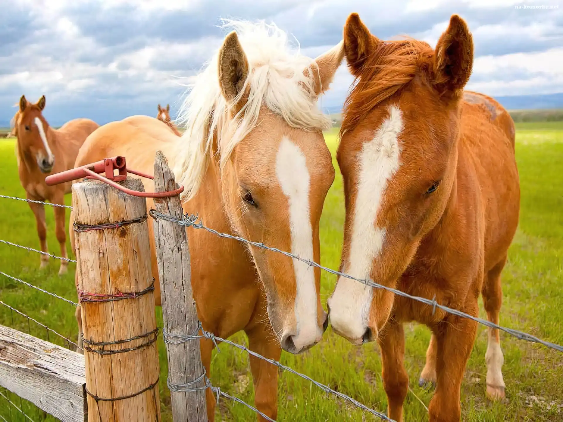 Chmury, Konie, Ogrodzenie, Trawa, Niebo na Komórkę