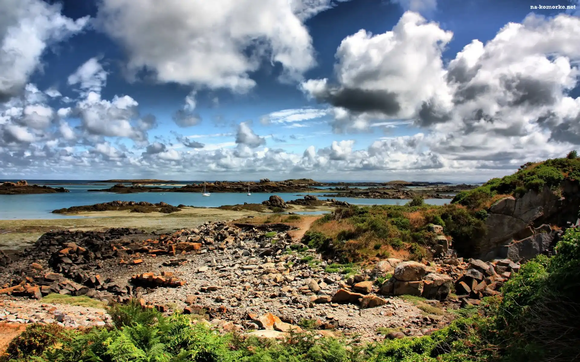 Chmury, Brzeg, Kamienie, Wysepki, Niebo na Komórkę