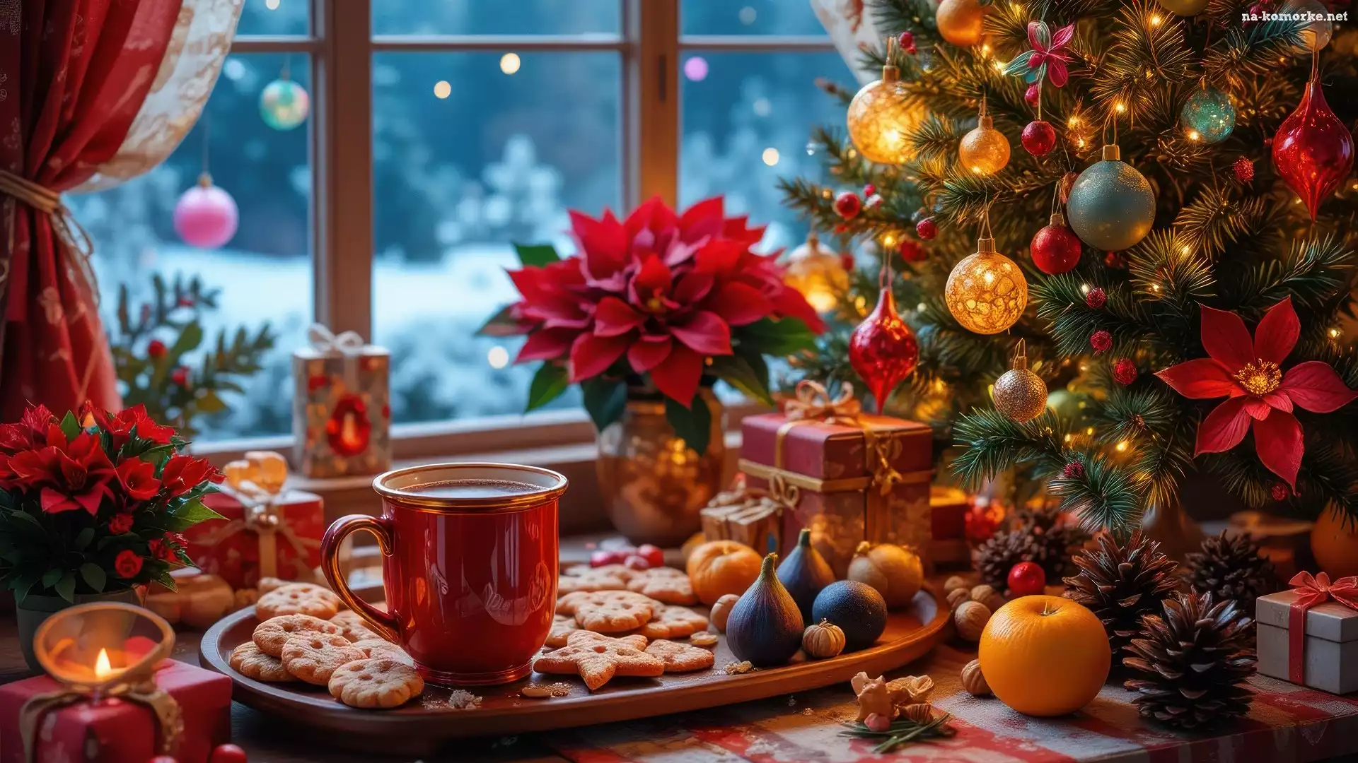 Kawa, Prezenty, Boże Narodzenie, Okno, Ciasteczka, Kubek, Choinka na Komórkę
