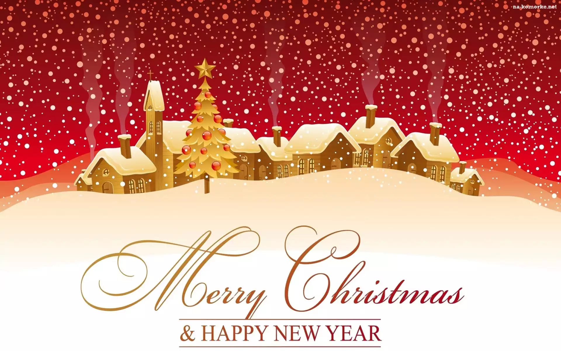 Choinka, Świąteczna, Grafika, Napis, Domki, Śnieg na Komórkę