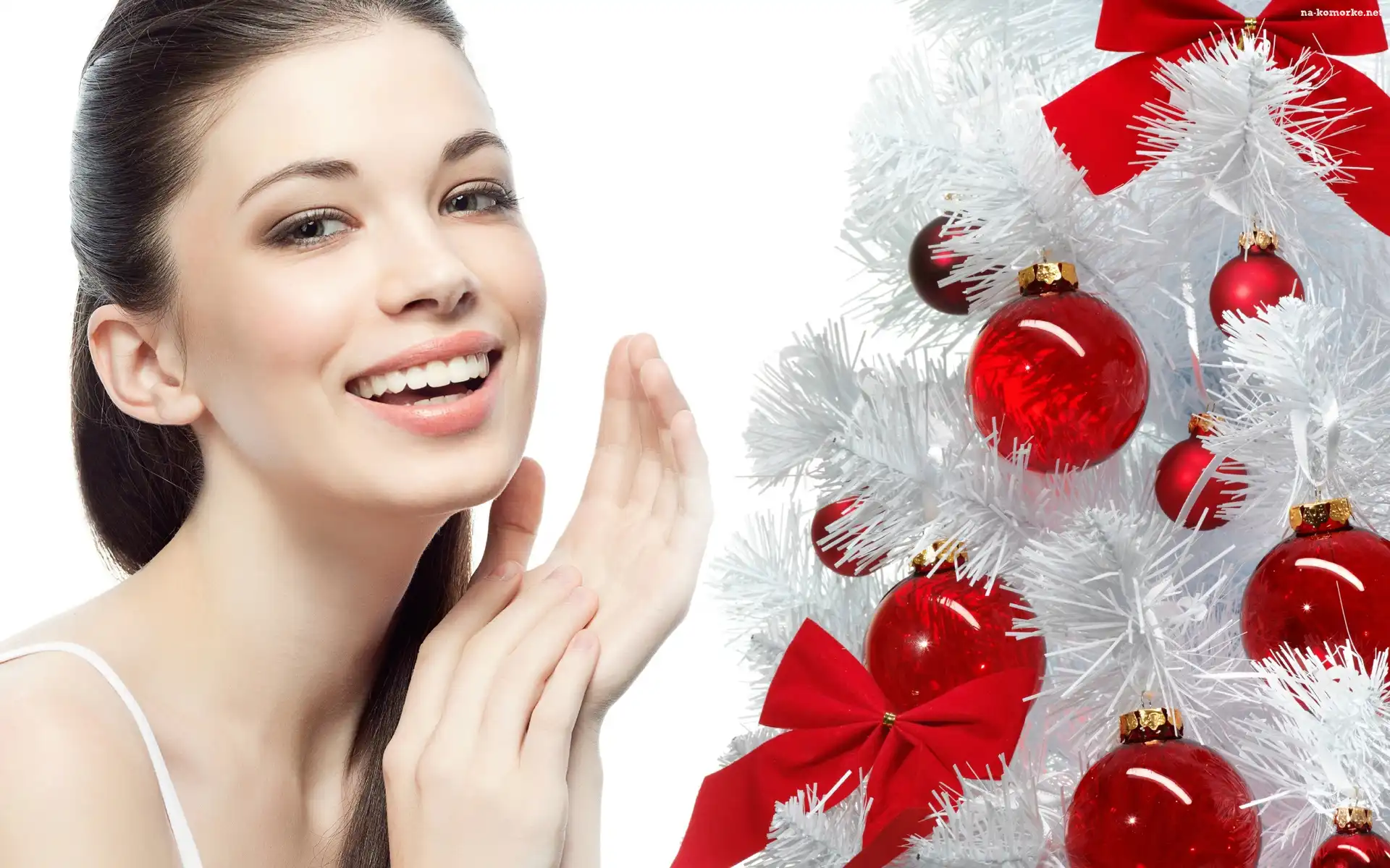 Choinka, Uśmiechnięta, Modelka, Makijaż, Biała na Komórkę