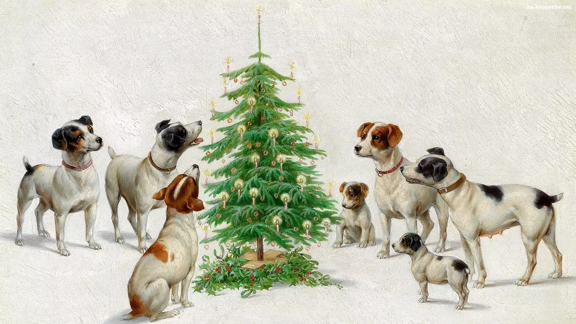 Malarstwo, Choinka, Psy, Karl Reichert, Boże Narodzenie, Obraz na Komórkę