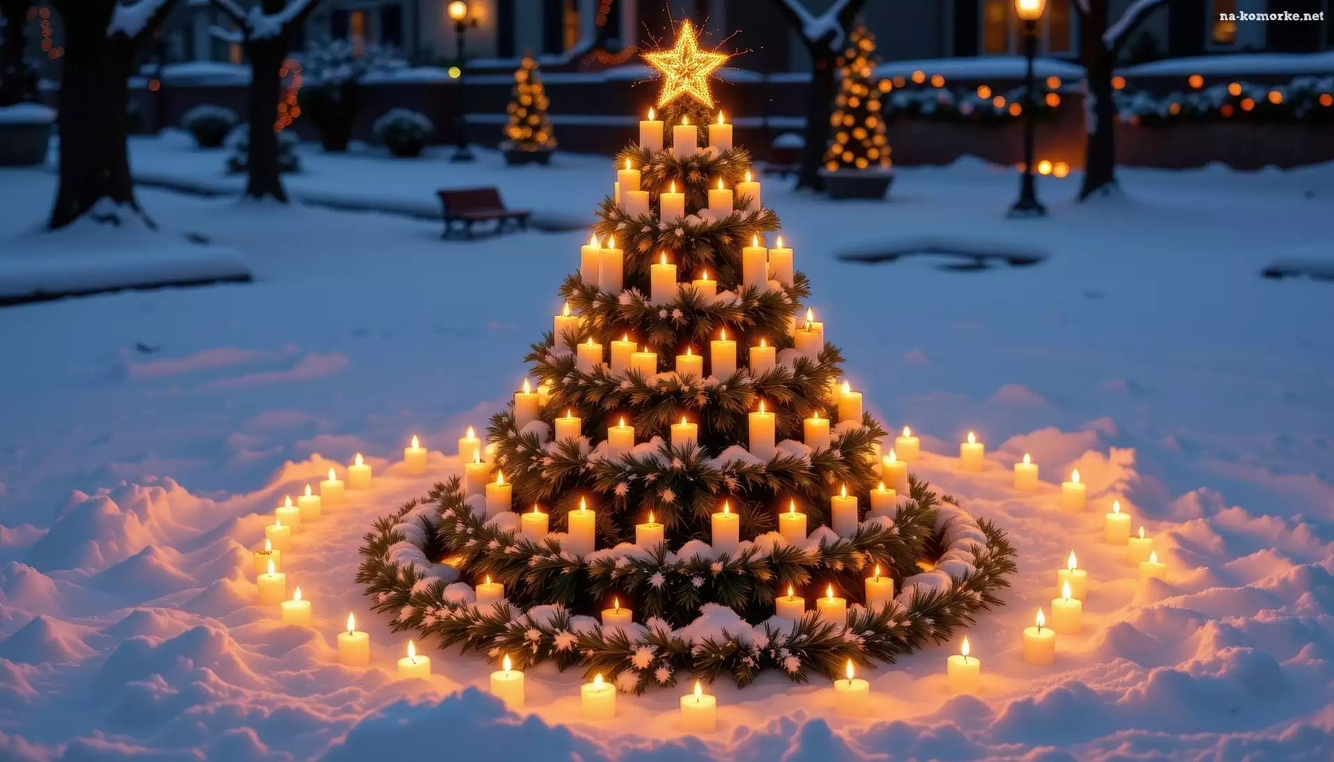 Świece, Śnieg, Zima, Choinka na Komórkę
