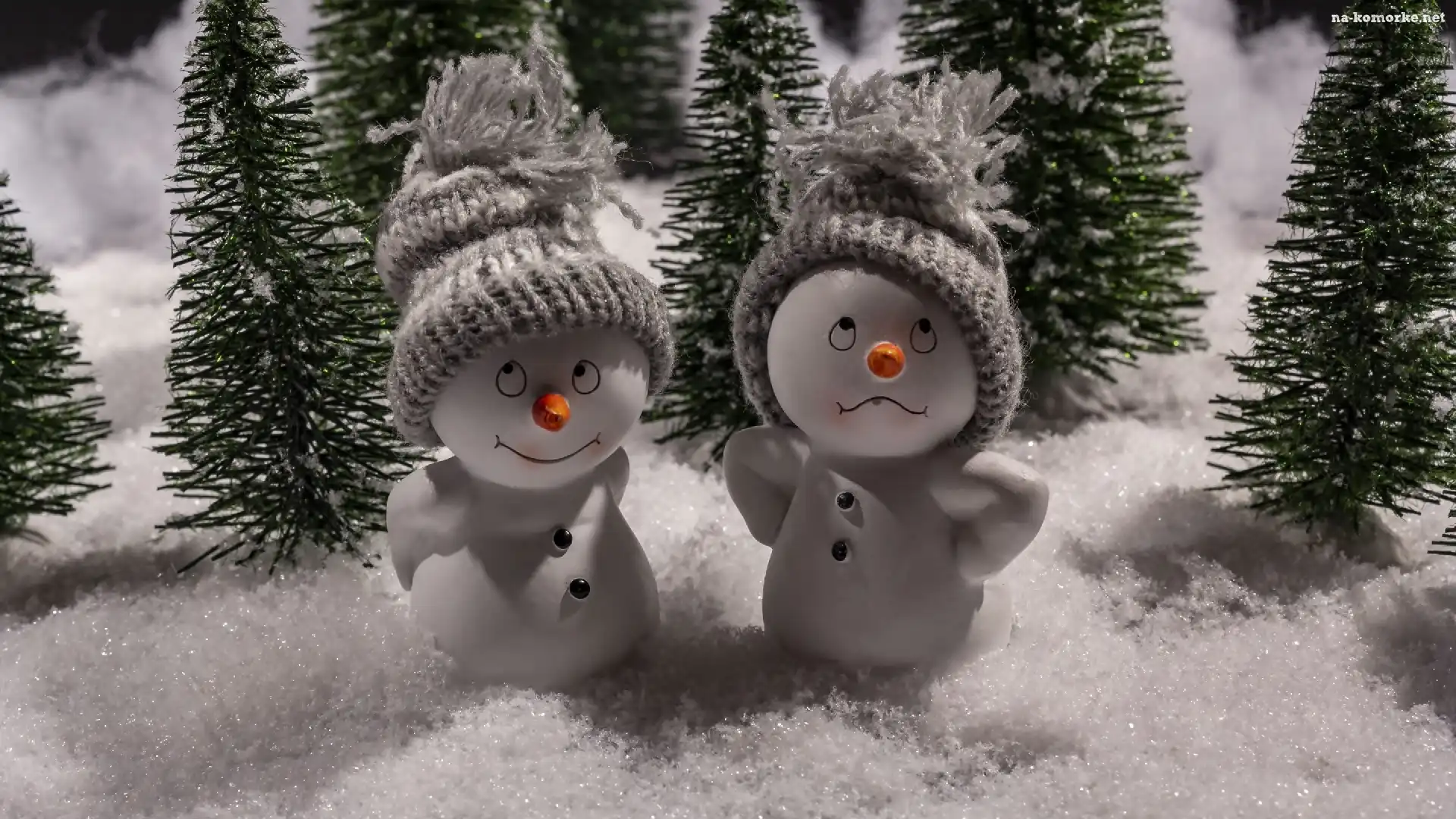 Choinki, Figurki, Dwa, Bałwanki, Czapki na Komórkę
