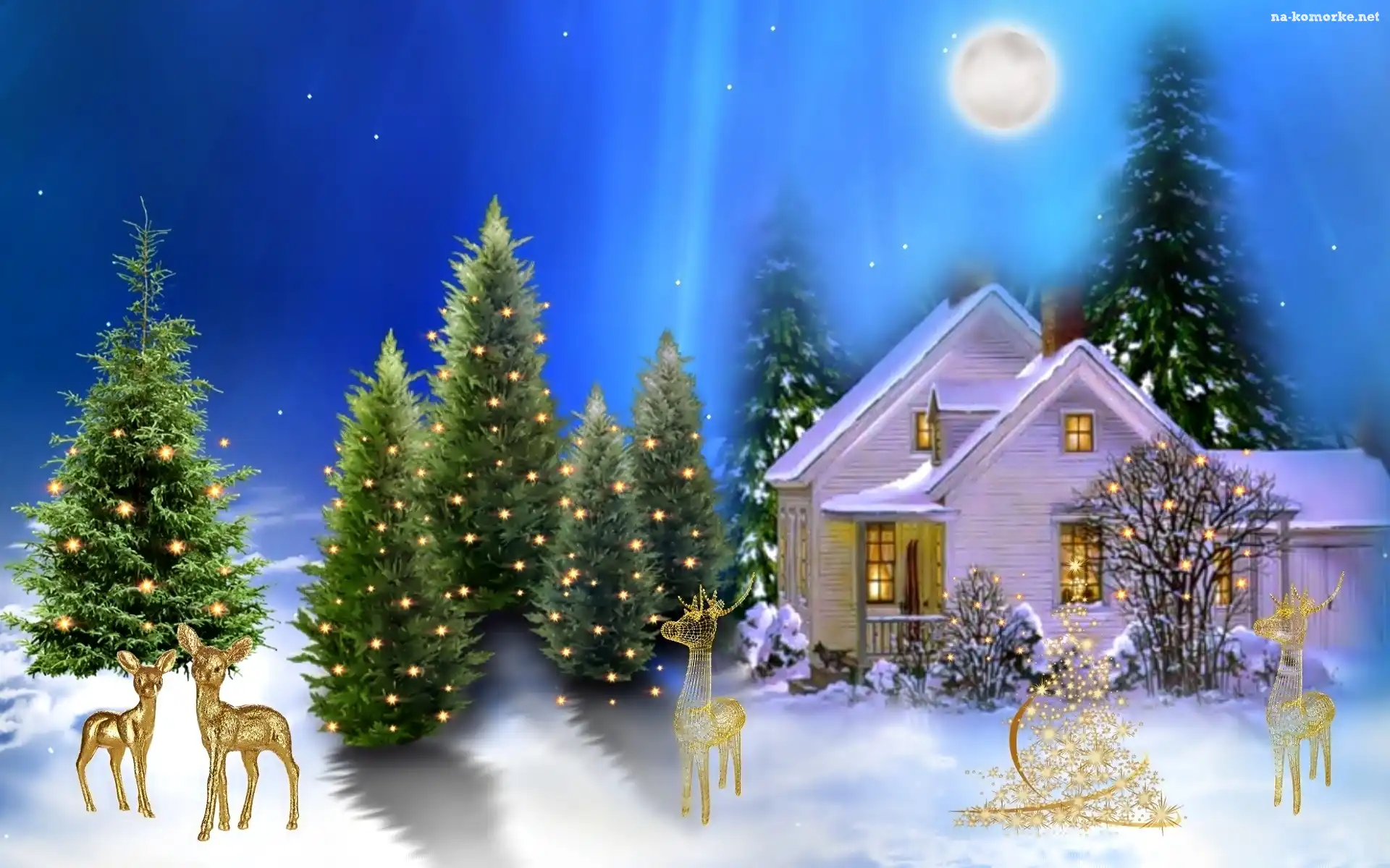 Boże, Choinki, Ozdoby, Narodzenie, Zima, Śnieg, Domy na Komórkę