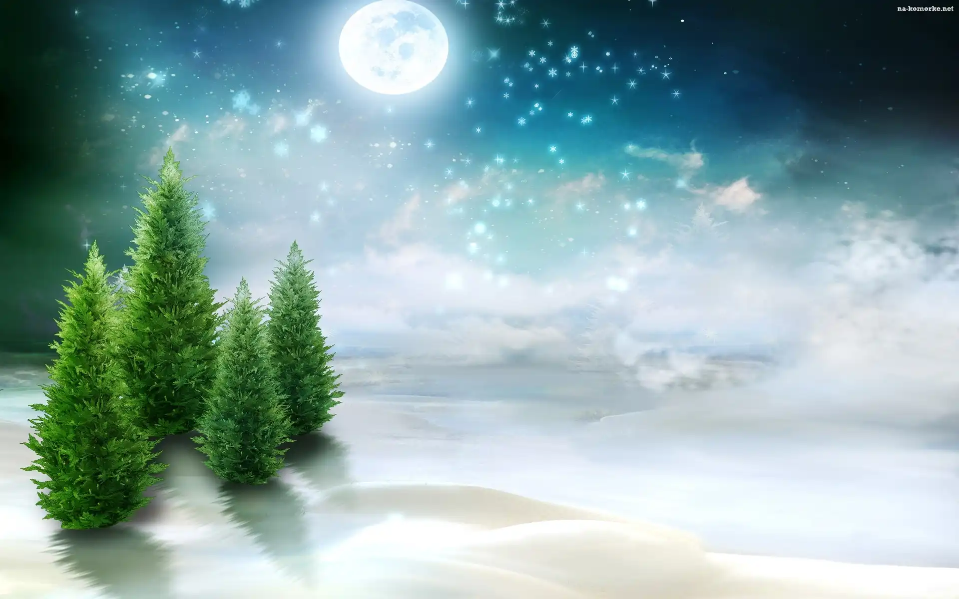 Choinki, Zima, Śnieg, Księżyc na Komórkę