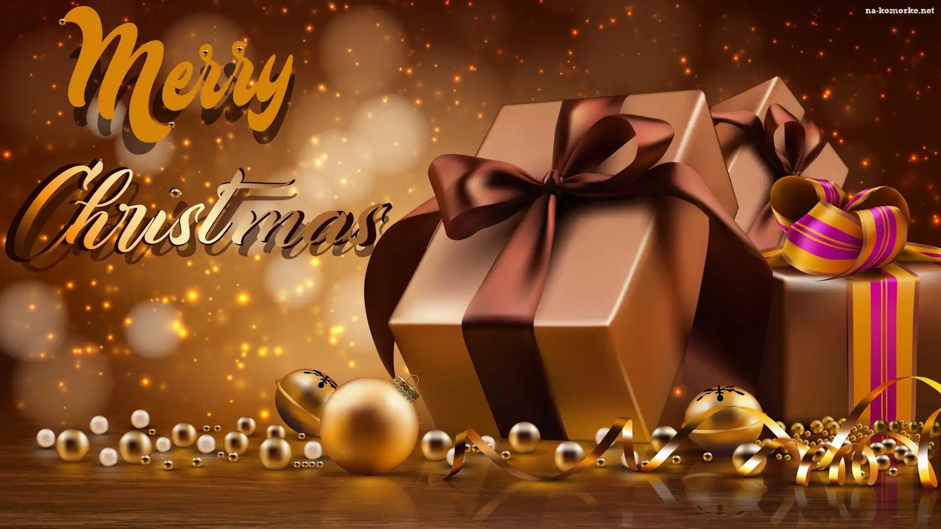Boże Narodzenie, Wstążki, 2D, Prezenty, Bombki, Napis, Merry Christmas na Komórkę