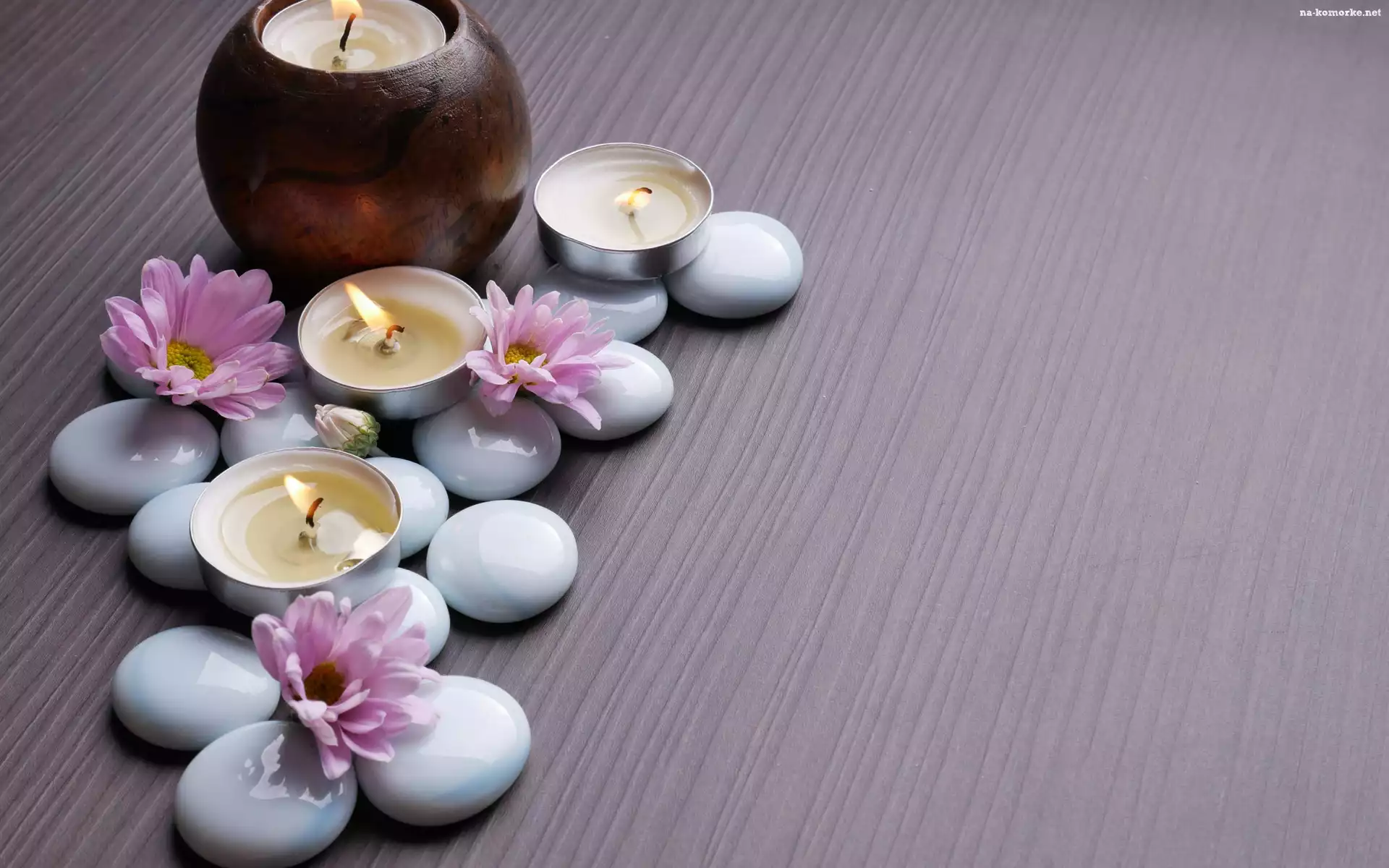 Chryzantema, SPA, Kamienie, Świece, Kwiaty na Komórkę