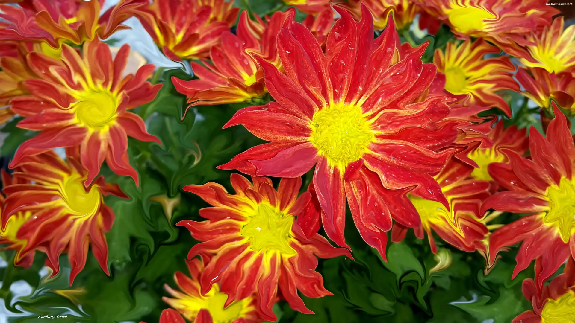 Czerwone, Chryzantemy, Grafika na Komórkę