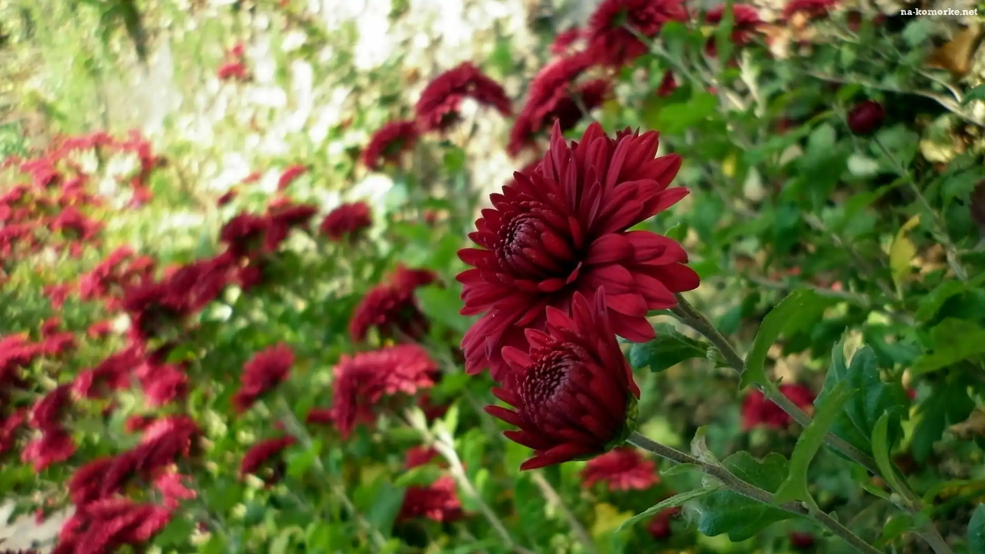 Czerwone, Chryzantemy, Rozmycie na Komórkę