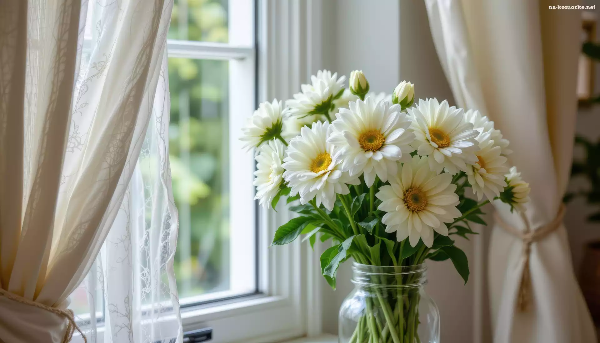 Słoik, Okno, Białe, Chryzantemy na Komórkę