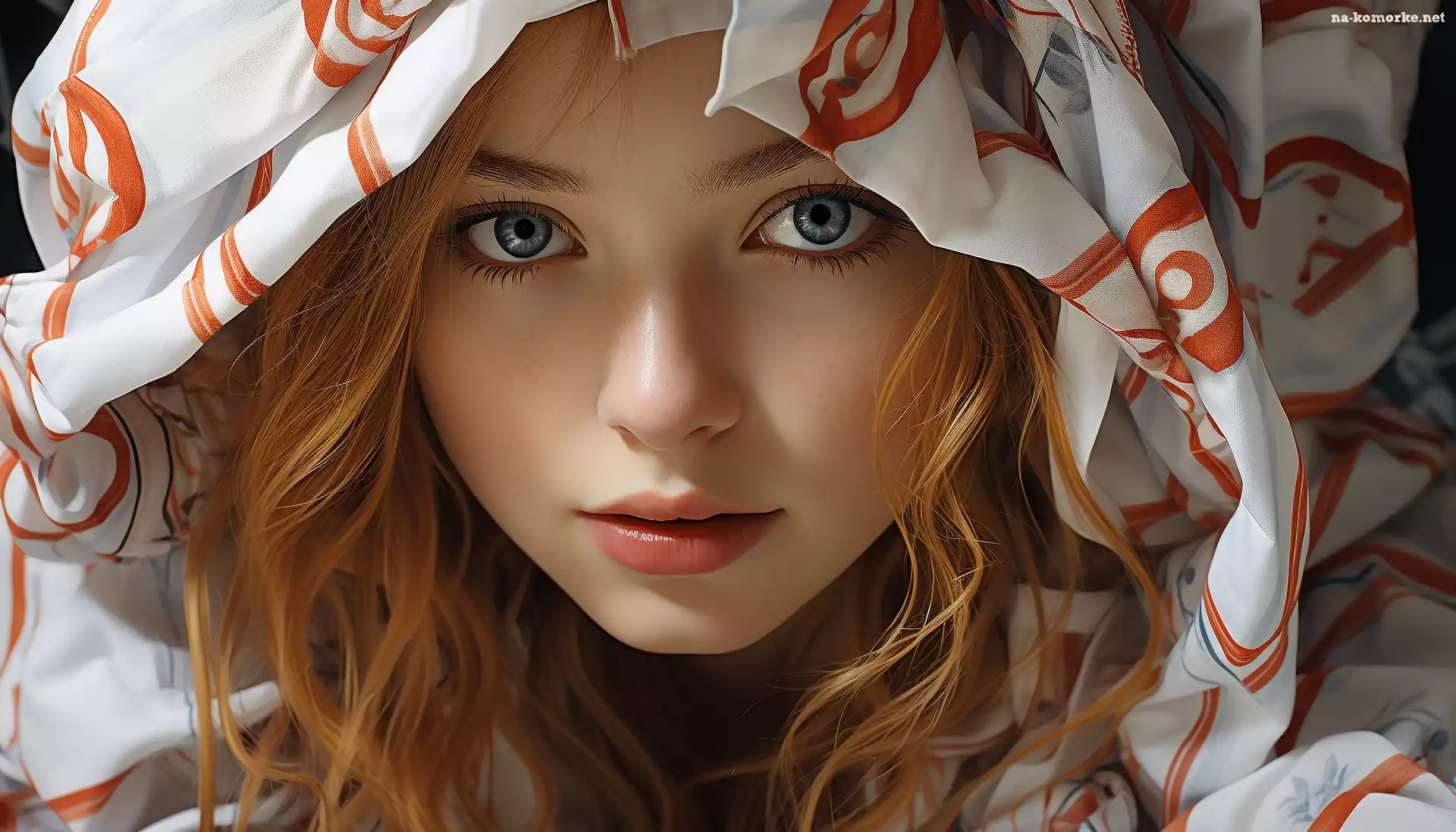 Dziewczyna, Chusta 2D, Niebieskooka, Rudowłosa na Komórkę