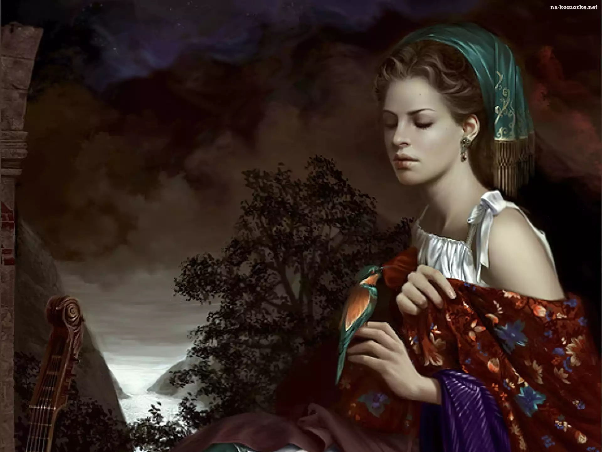 Kobieta, Chusta, Ptak na Komórkę