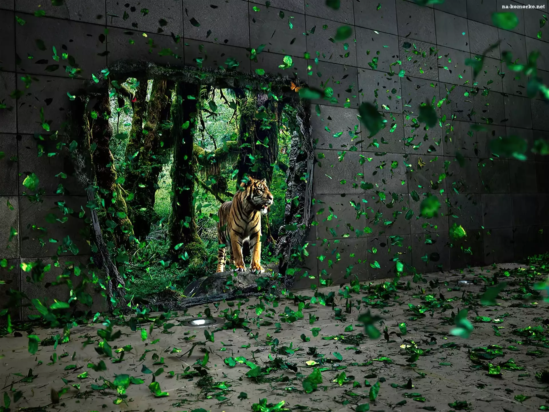 Tygrys, Ściana, Liście na Komórkę