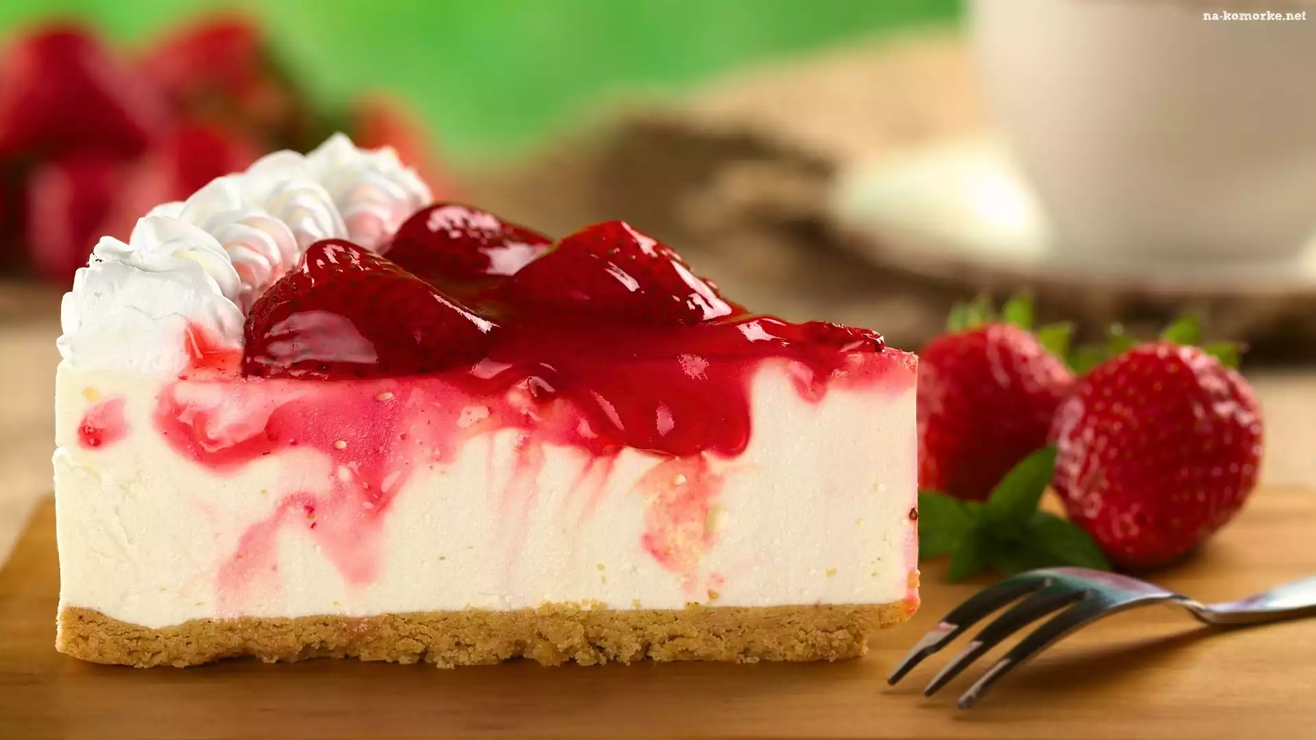 Ciasto, Truskawki, Sernik, Sos na Komórkę