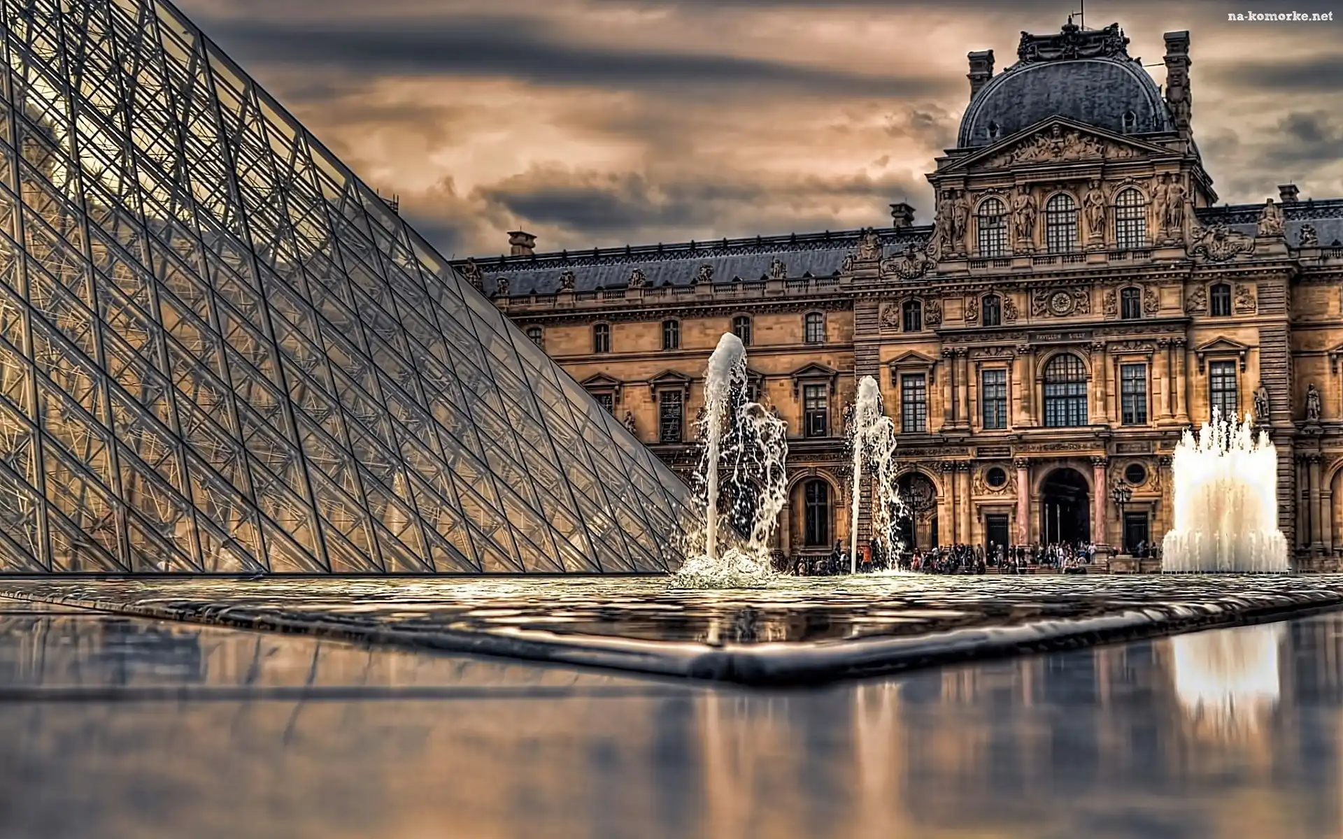 Paryż, Ciemne, Chmury, Fragment, Luwru, Sadzawka, Fontanna na Komórkę