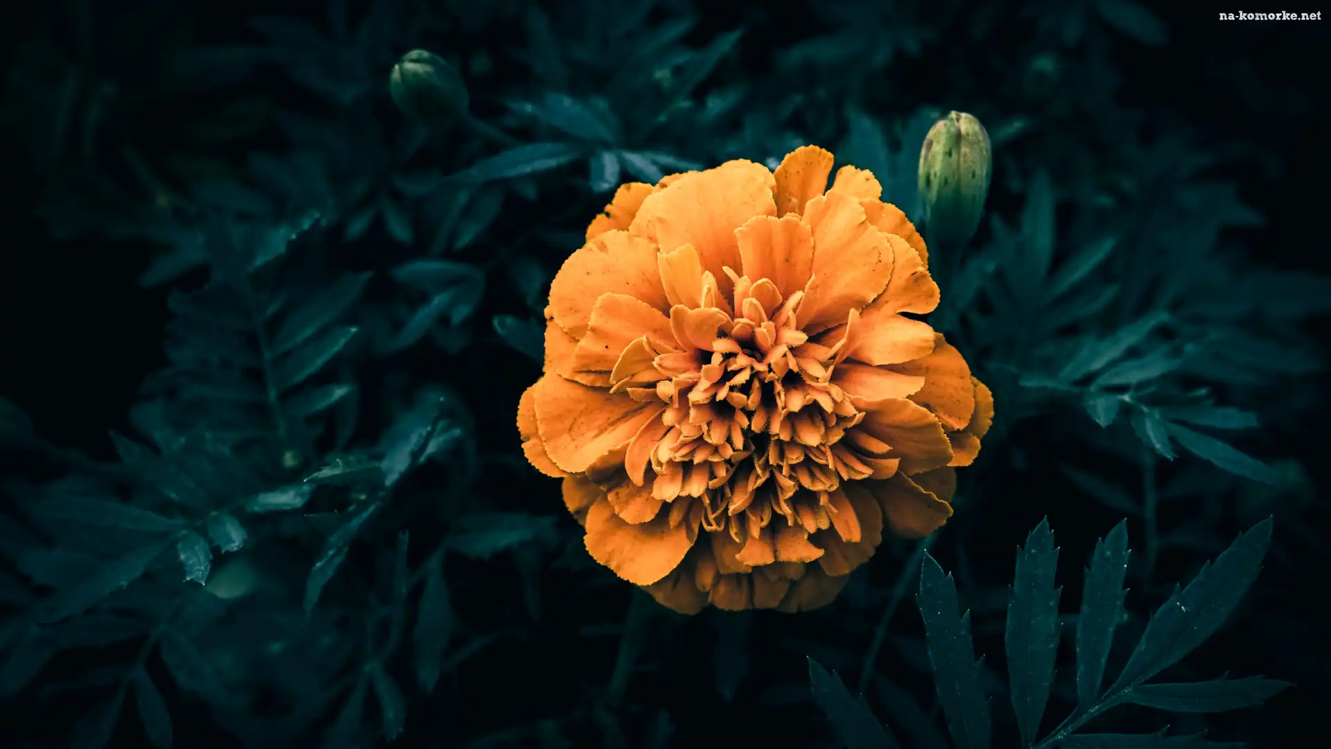Liście, Ciemne tło, Kwitnąca, Aksamitka na Komórkę