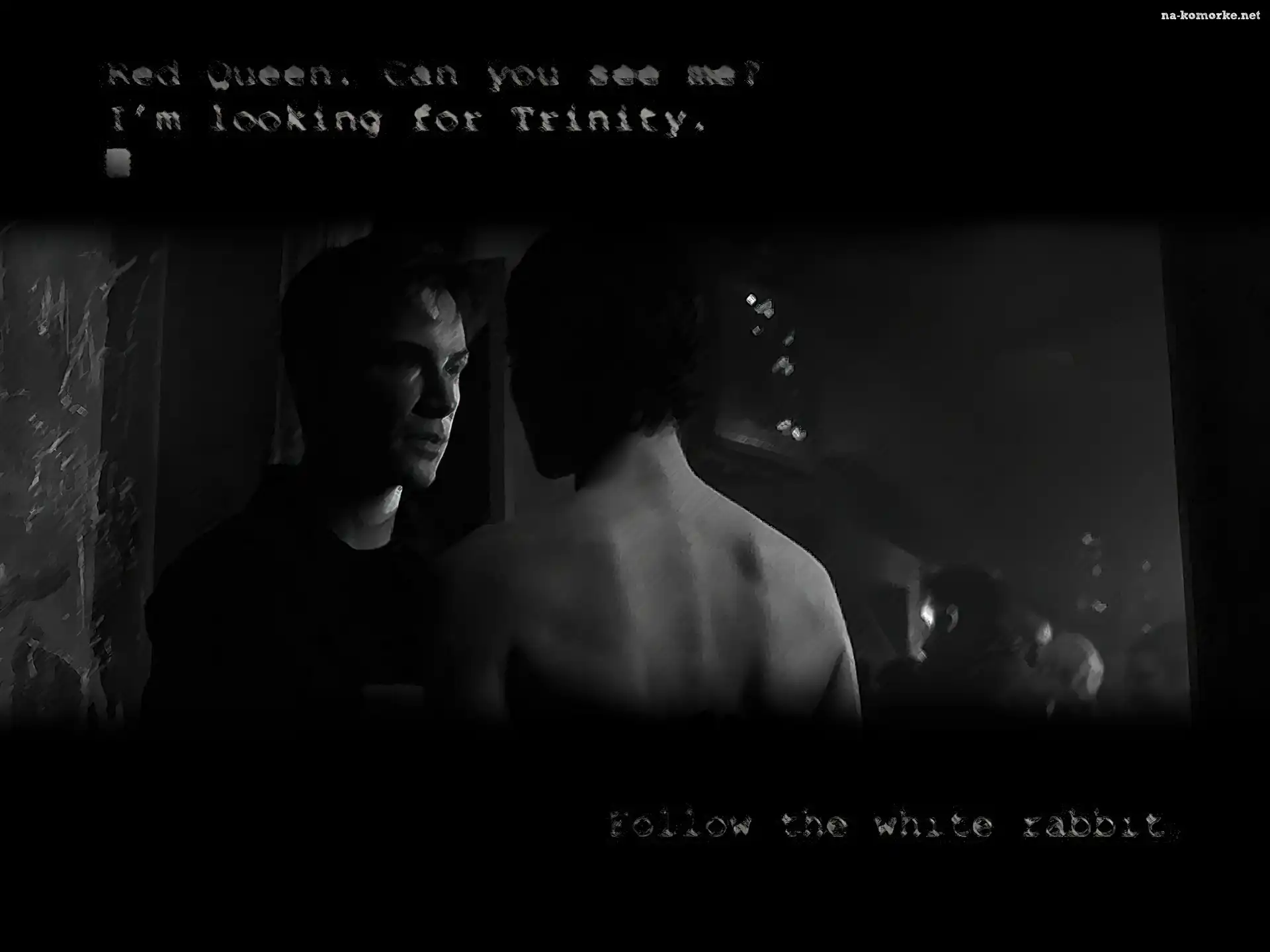 postacie, plecy, ciemno, Matrix na Komórkę