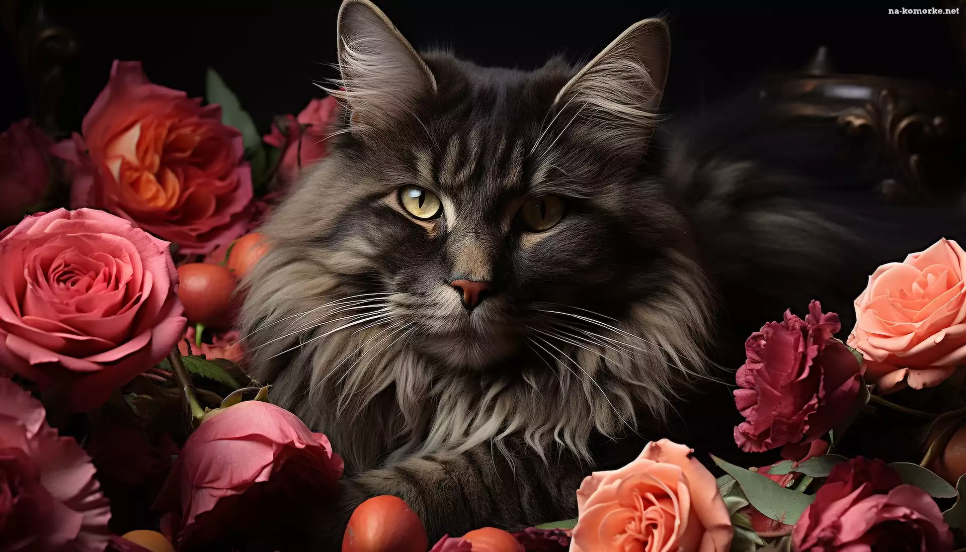 Zbliżenie, Róże, Kot, Ciemny na Komórkę