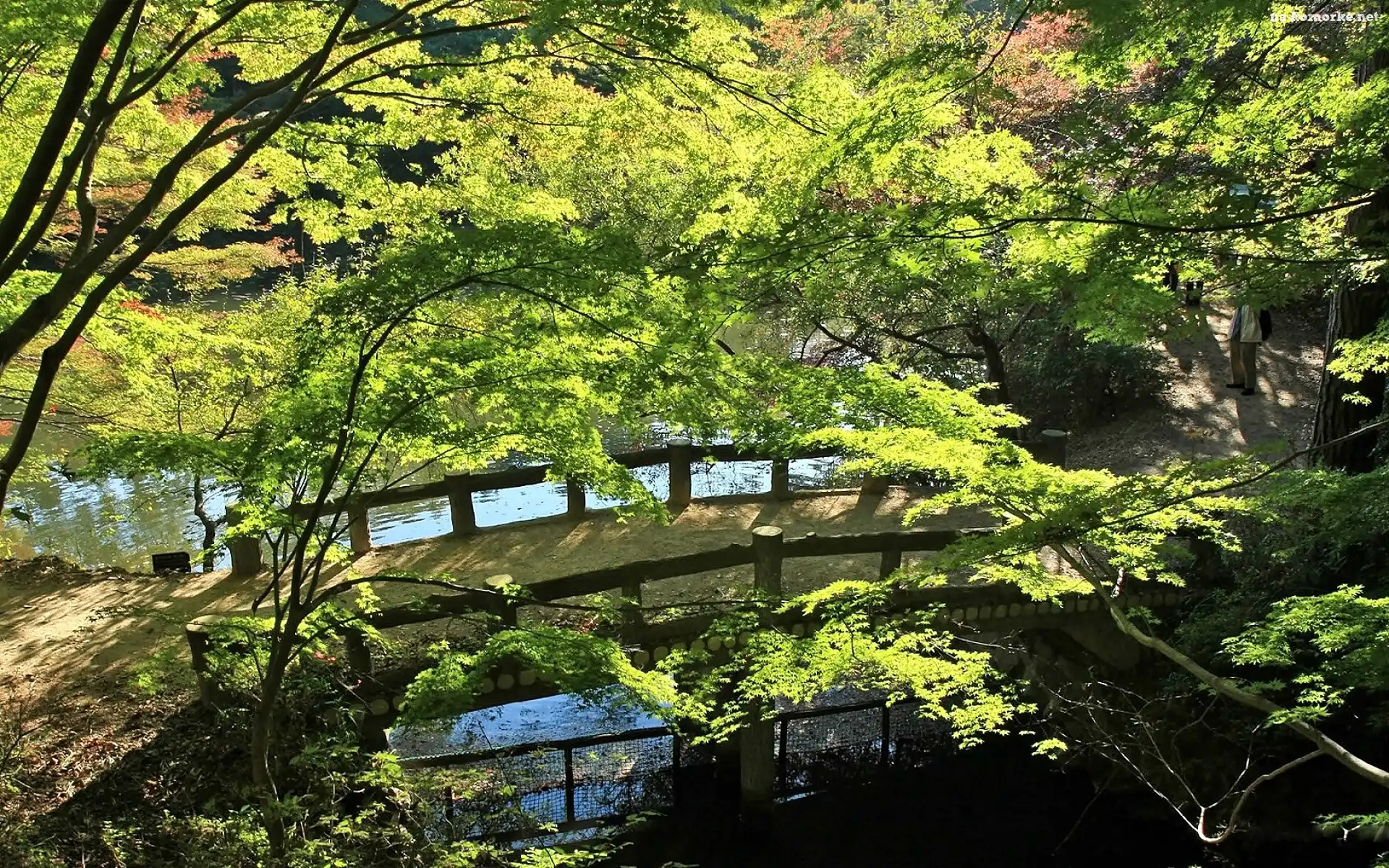 Cienie, Park, Strumyk, Mostek, Światła na Komórkę