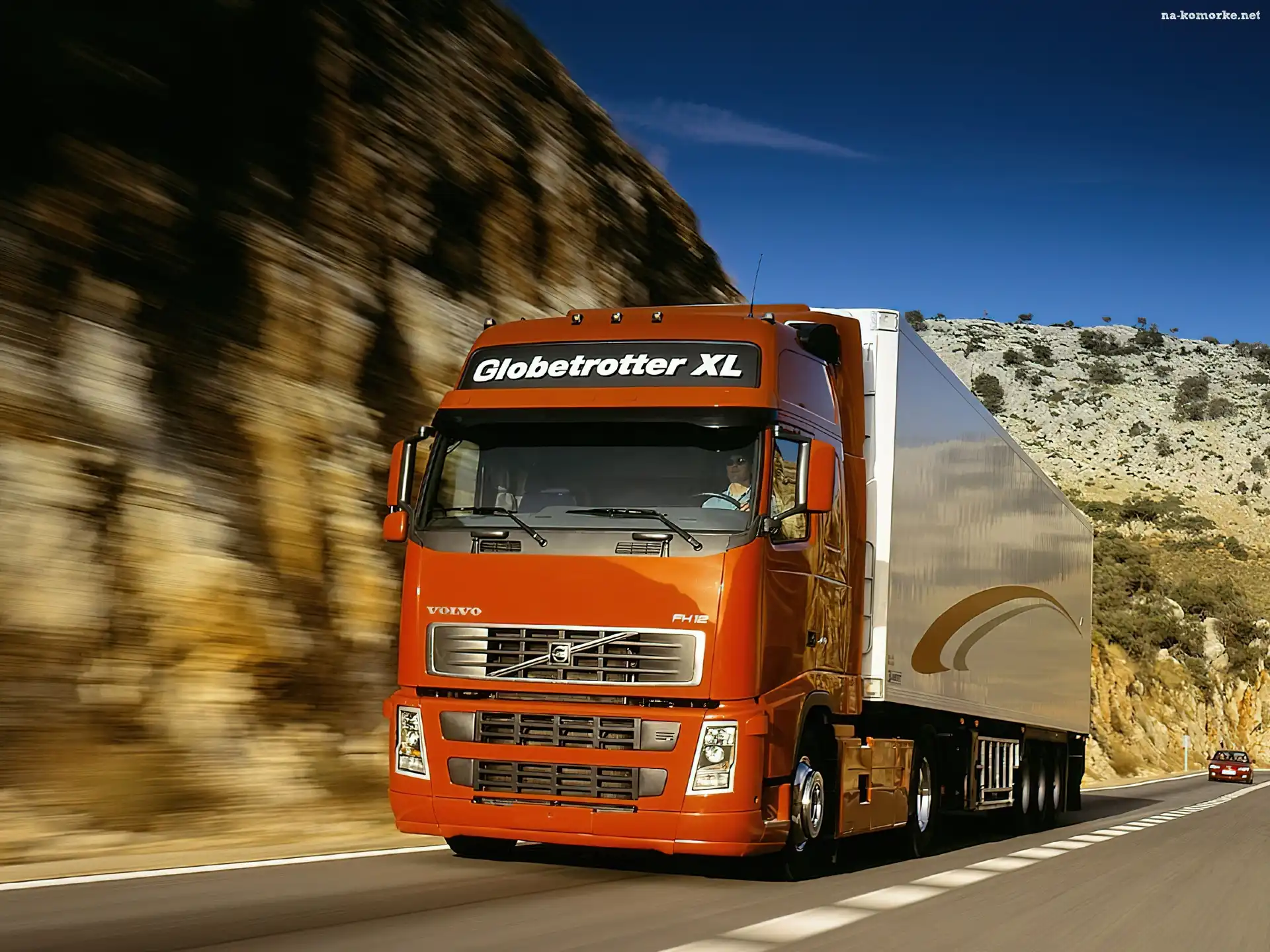 Pomarańczowa Ciężarówka Volvo na Komórkę