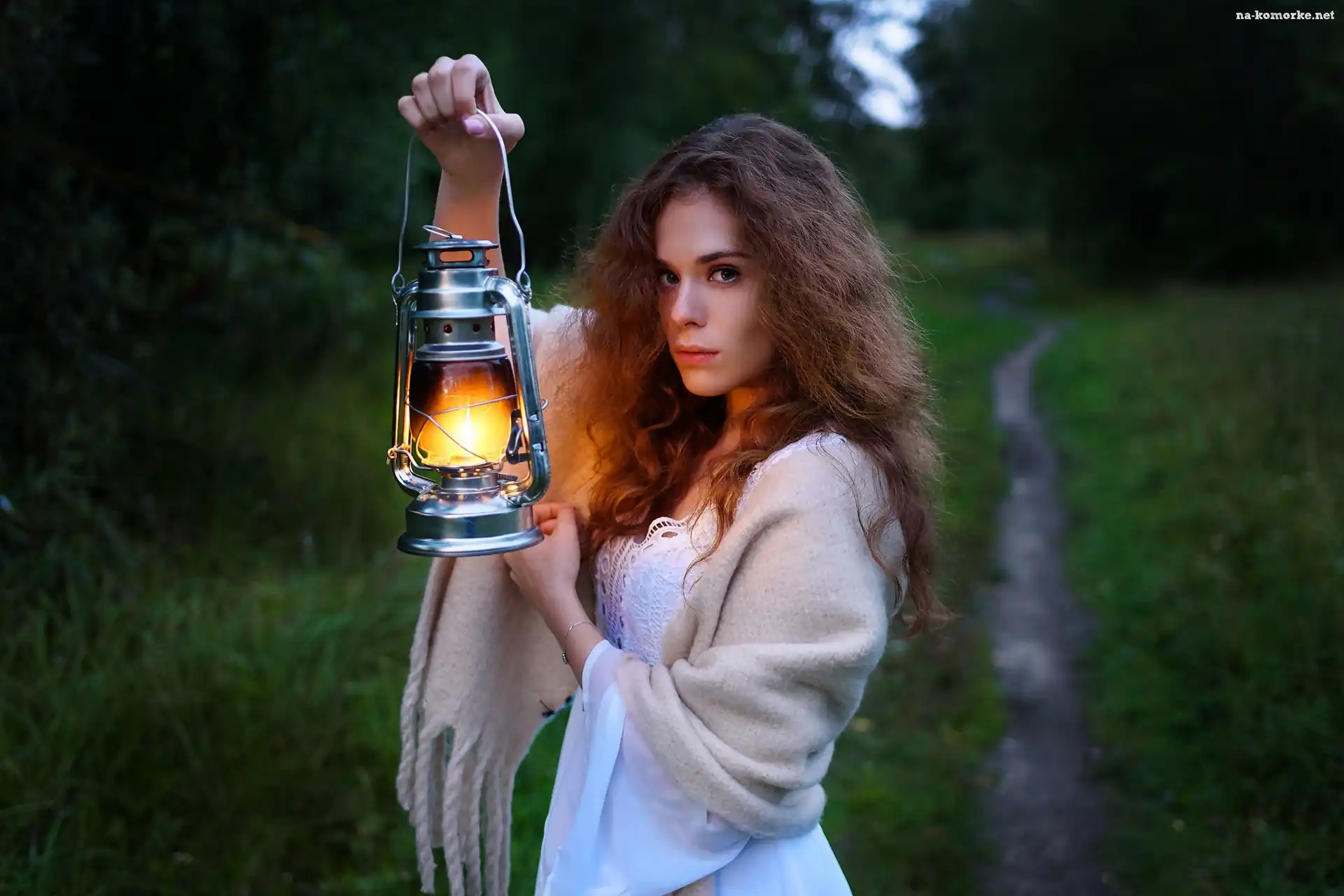 Ścieżka, Szal, Kobieta, Zmrok, Lampa, Las na Komórkę